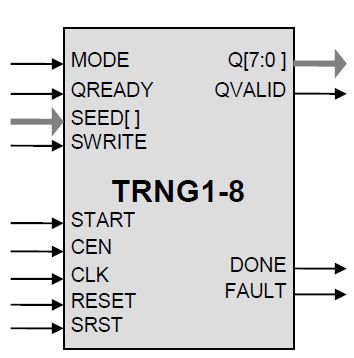 The TRNG1 core is available in with different datapath widths and throughputs.