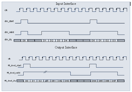 Start the FFT computation. This signal should be asserted either on the last input data sample or anytime after sending all input data. Internal FFT engine will start FFT computation when fft_din_start is sampled high on the clock edge. FFT output will be available after fixed latency |